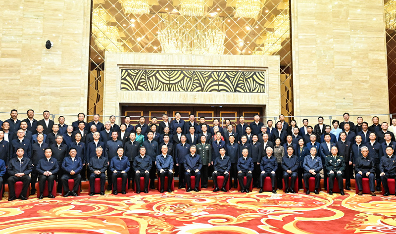 習近平等來到接見現場時,全場響起長時間熱烈掌聲。習近平向大家揮手致意,不時同代表親切交流,并同大家合影留念。